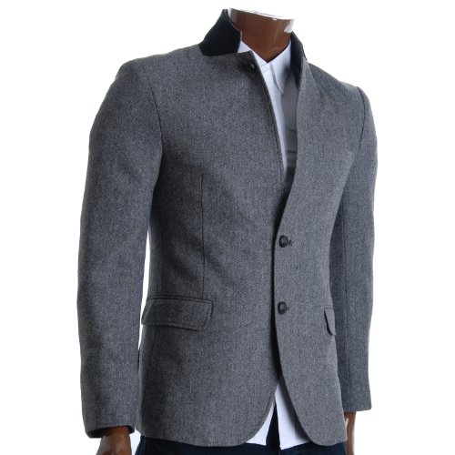Product Details FLATSEVEN Mens Slim Fit Winter Wool Blends Jacket Herringbone (BJ210) Grey, L