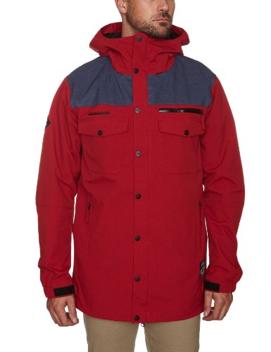 ONeill Freedom Button Up Snow Jacket, Exterior 100%Nylon, Lining Upper Body 100%Polyester, Lining Lower Body 100%Nylon, 10K MM/10K GRS, Critically taped seams, Articulation, Firewall 1- Ergonomic insulation, Connector system- Pant connector, Fixed hood, Chin guard, Single storm placket, Basic audio pocket and zip, Goggle pocket, Lift pass pocket-zipper closure, Adjustable cuff-normal, Bottom adjustment, Stow snowgaiter, Denim/Canvas, Custom fit(Parka), A super quality snow jacket from ONeill in Rio red, which has a wicked denim block across the top of the chest which looks amazing against the red, a small black ONeill embroidered tab can be found just above the waistband. This is a must have versatile snow jacket that looks amazing teamed with almost any coloured snow pants snow pants for a great look that will keep you out on the mountain all day long. A great snow jacket that has been created using Firewall 1 which is insulation for cold temperatures, and features ergonomic panelling...