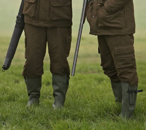 Sherwood Forest Kensington trousers are 90% polyester 10% nylon. Silent outer fabric with waterproof and breathable membrane. Adjustable hem for a snug fit and extra warmth. Silent stud fastening. Part elasticated waist